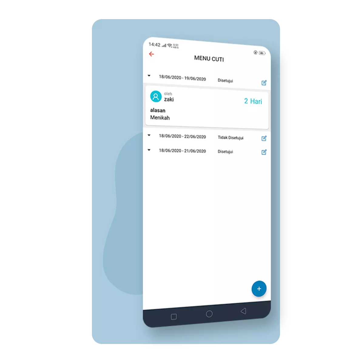Karyawan bisa langsung mengajukan cuti/izin hingga persetujuan cuti langsung dari online dan cepat.